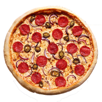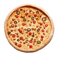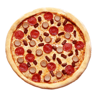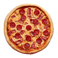Regular base / Mozzarella cheese / Our Signature Tomato Sauce, Pepperoni, Ham, Bacon, Chicken