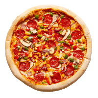 Regular base / Mozzarella cheese / Our Signature Tomato Sauce /Pepperoni, Ham, Sweetcorn, Pineapple, Mushroom, Onion, Peppers, Extra Mozzarella