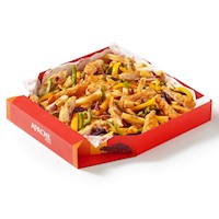 A portion of fries loaded with cajun chicken, jalapenos, cheese & our new spicy dynamite sauce!