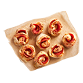 8 bite-sized savoury dough rolls with pepperoni, cheese.