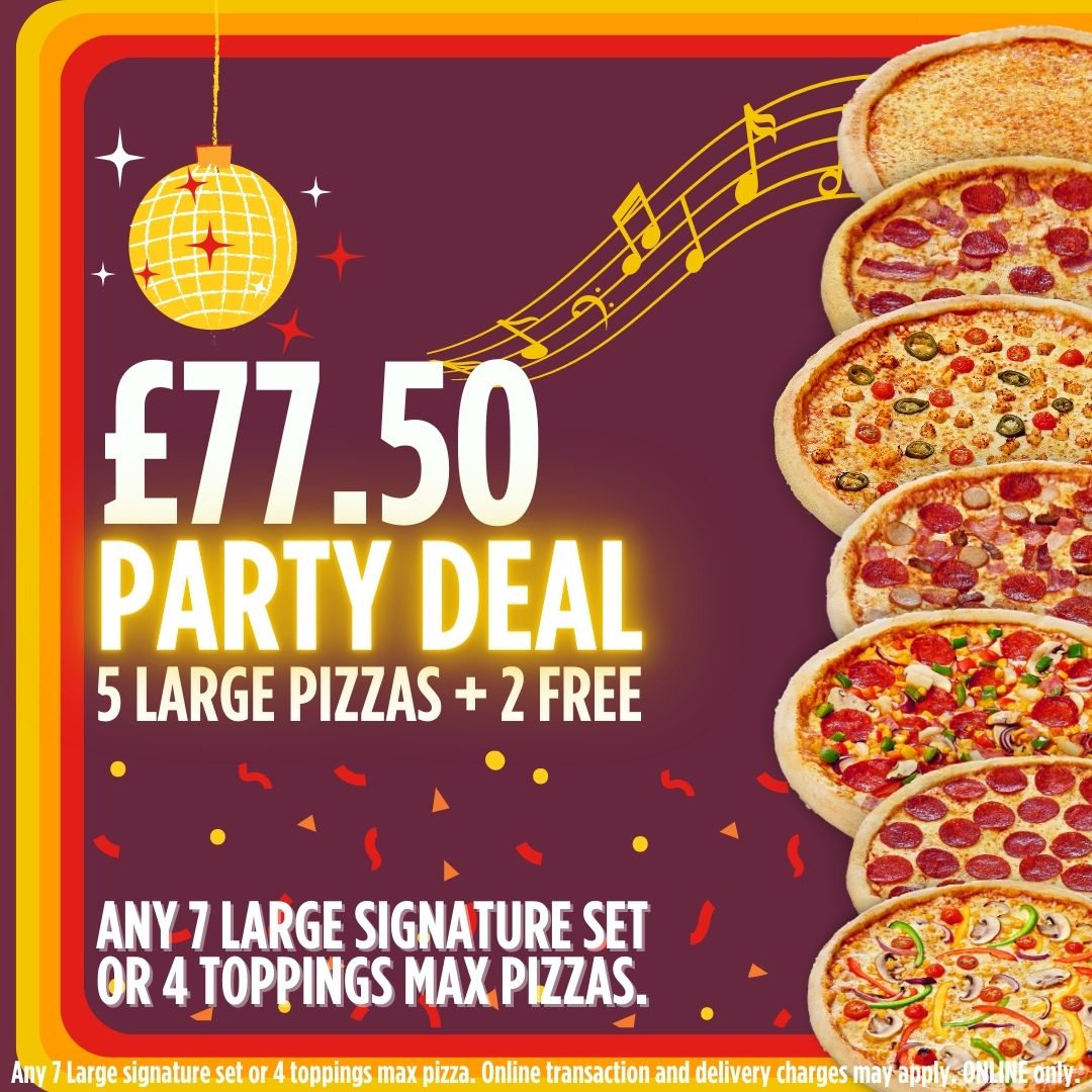 Game on Deal XL, XL set pizza or 4 toppings max, 6 chicken dippers and 6 chicken wings, 2 portions of chips, 1 ltr drink and 2 dips