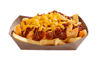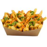Chips covered in minced beef, sauce & cheddar cheese.