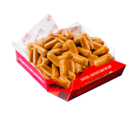 Regular box of bite size portions of crispy chicken poppers served with a dip.