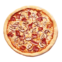 Regular base / Mozzarella cheese / Our Signature Tomato Sauce / Bacon, Mushroom, Onion, Extra Mozzarella